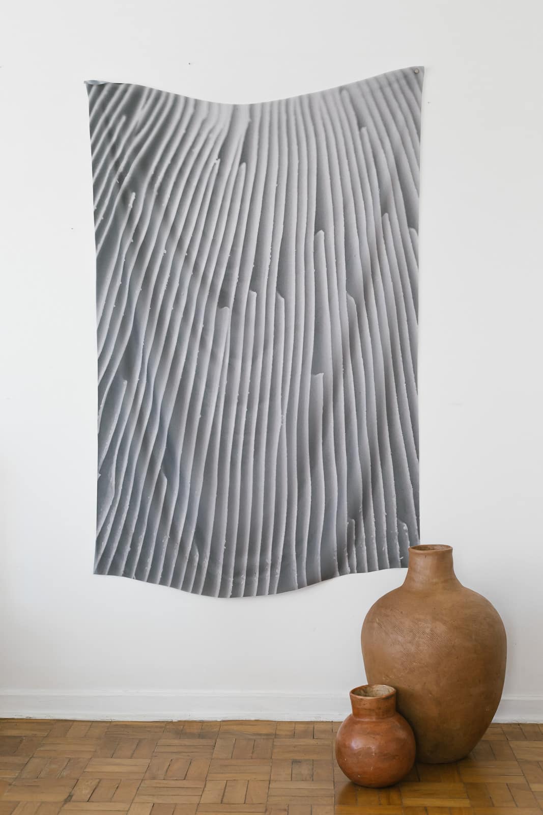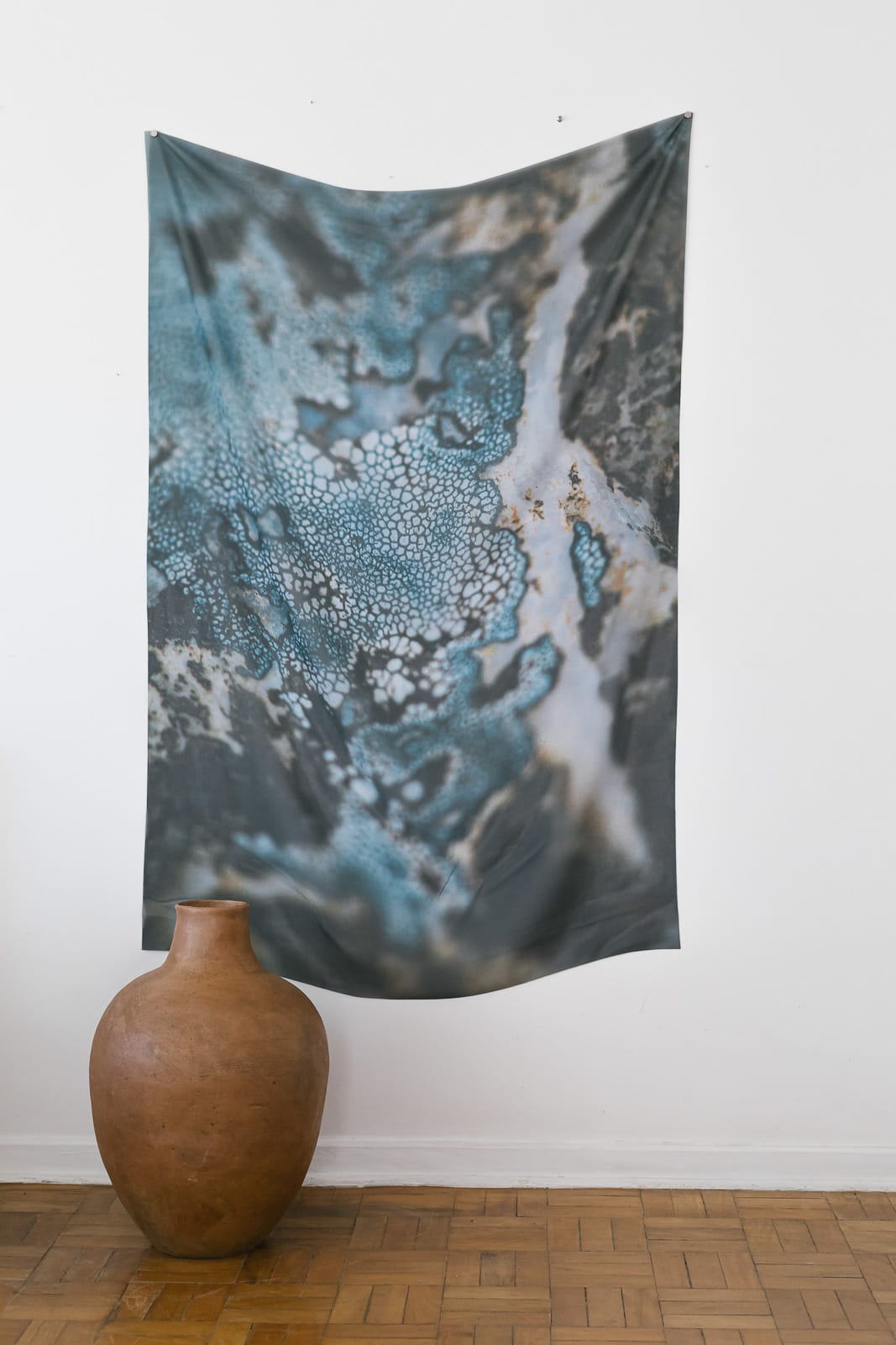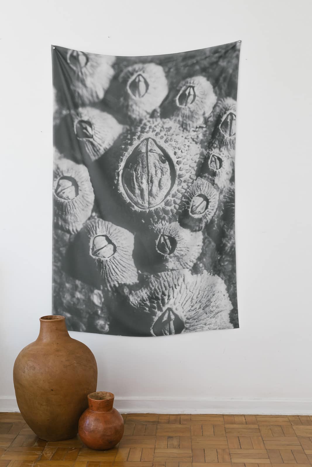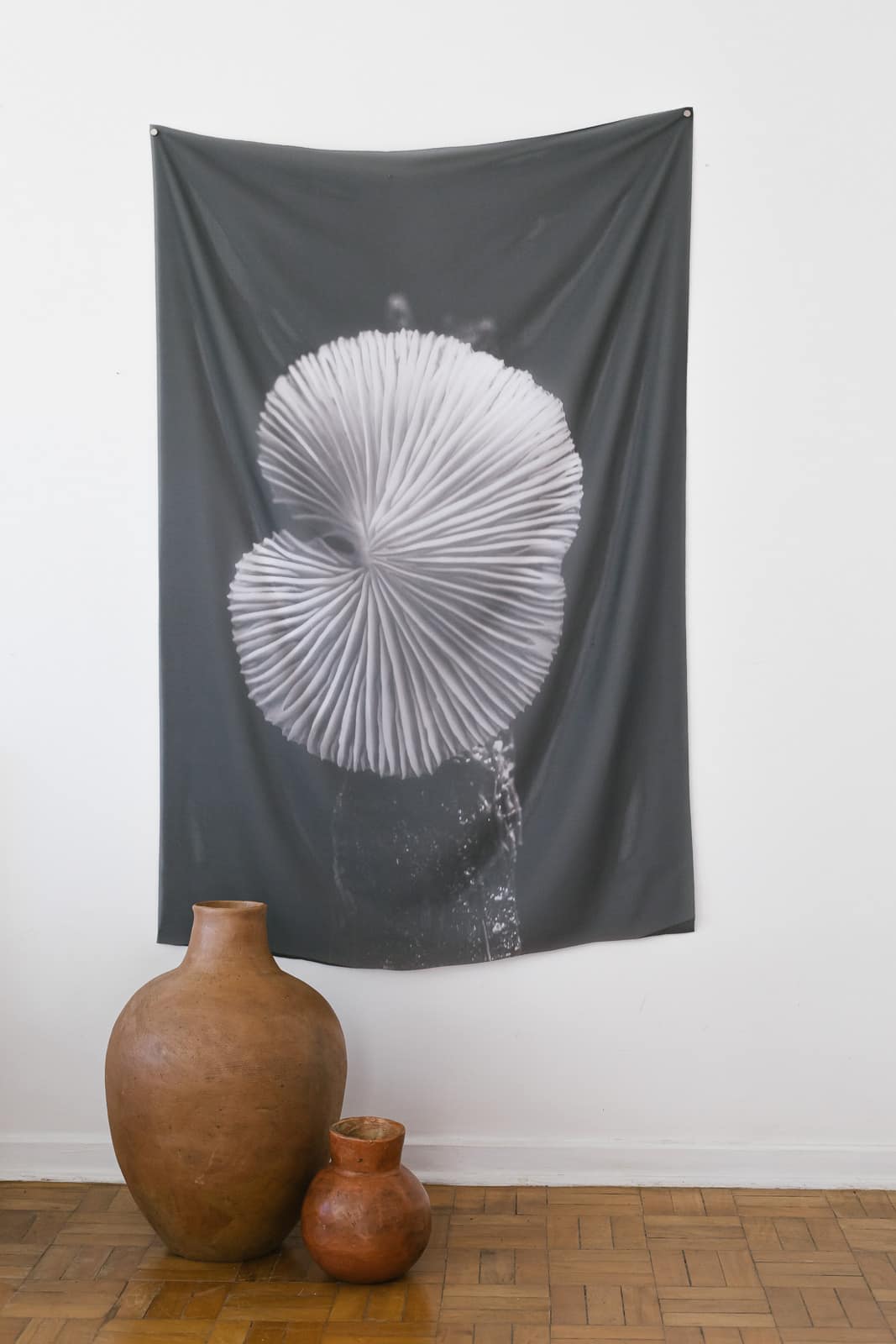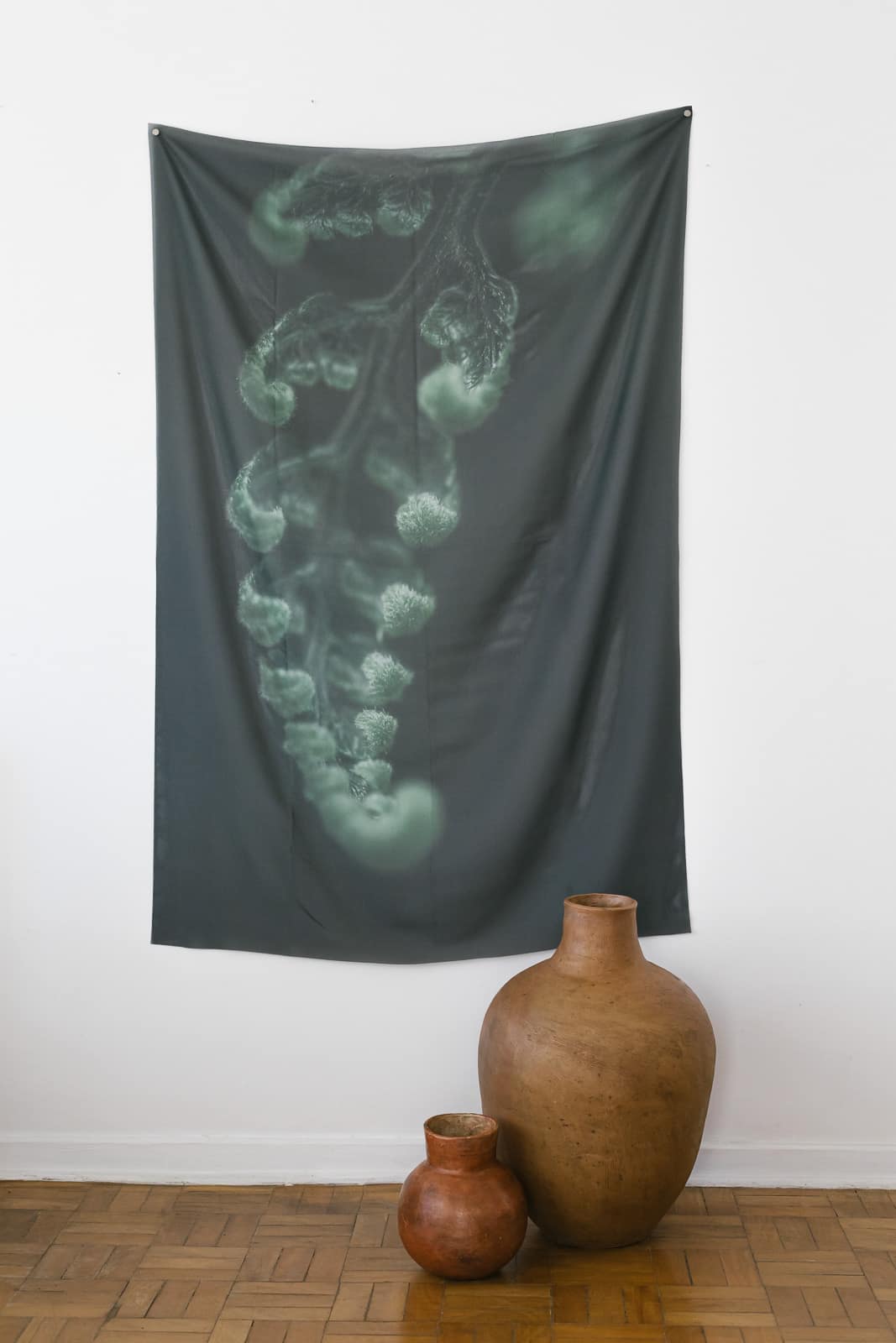 Fotos autorais do fotógrafo Vitor Barão impressas em voil com acabamento de refile em dois tamanhos (1m x 1,40m e 85cm x 60cm).
