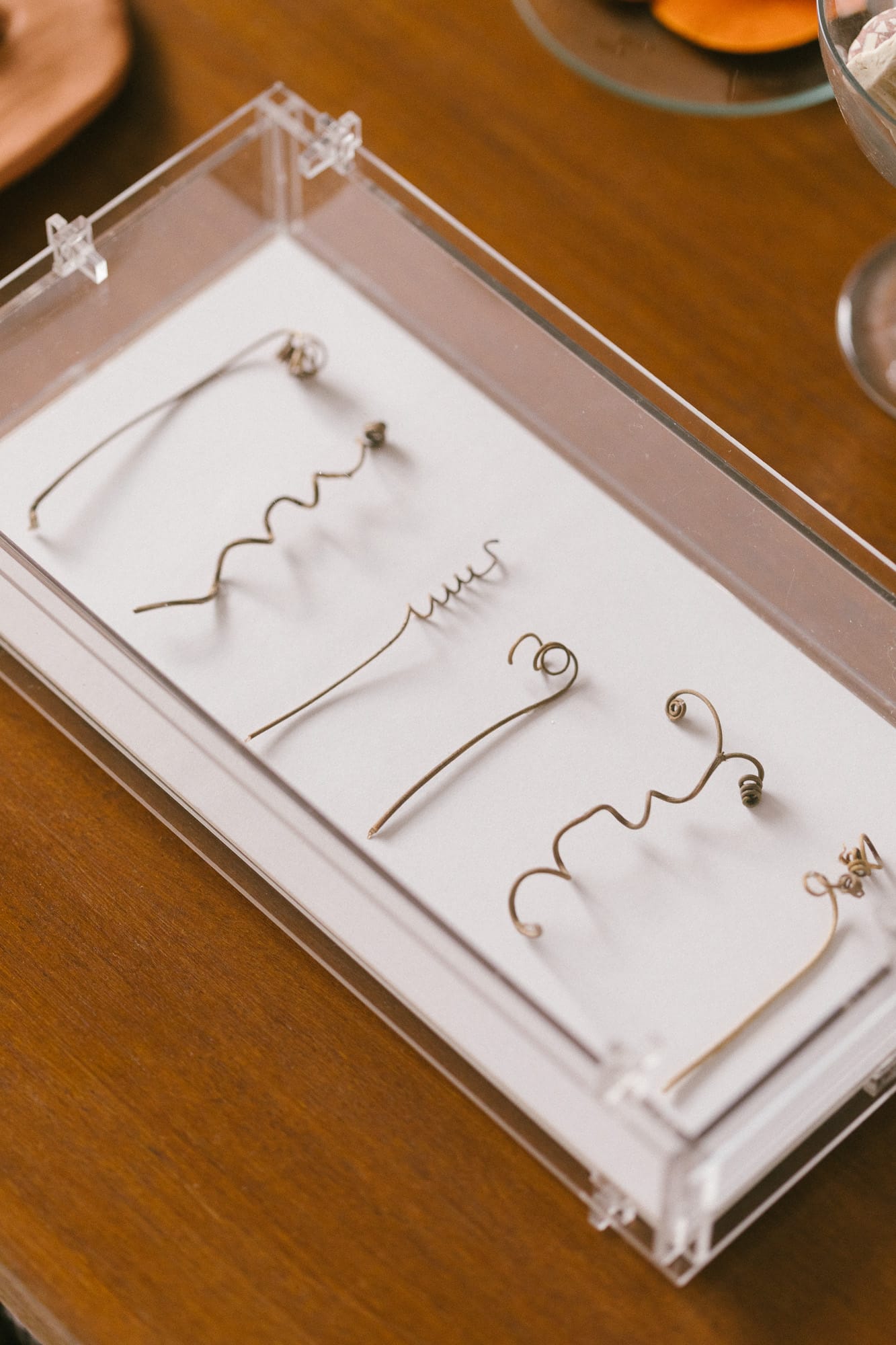 Na transparência da moldura, esses fragmentos naturais ganham a qualidade de desenho suspenso — gráfico e orgânico