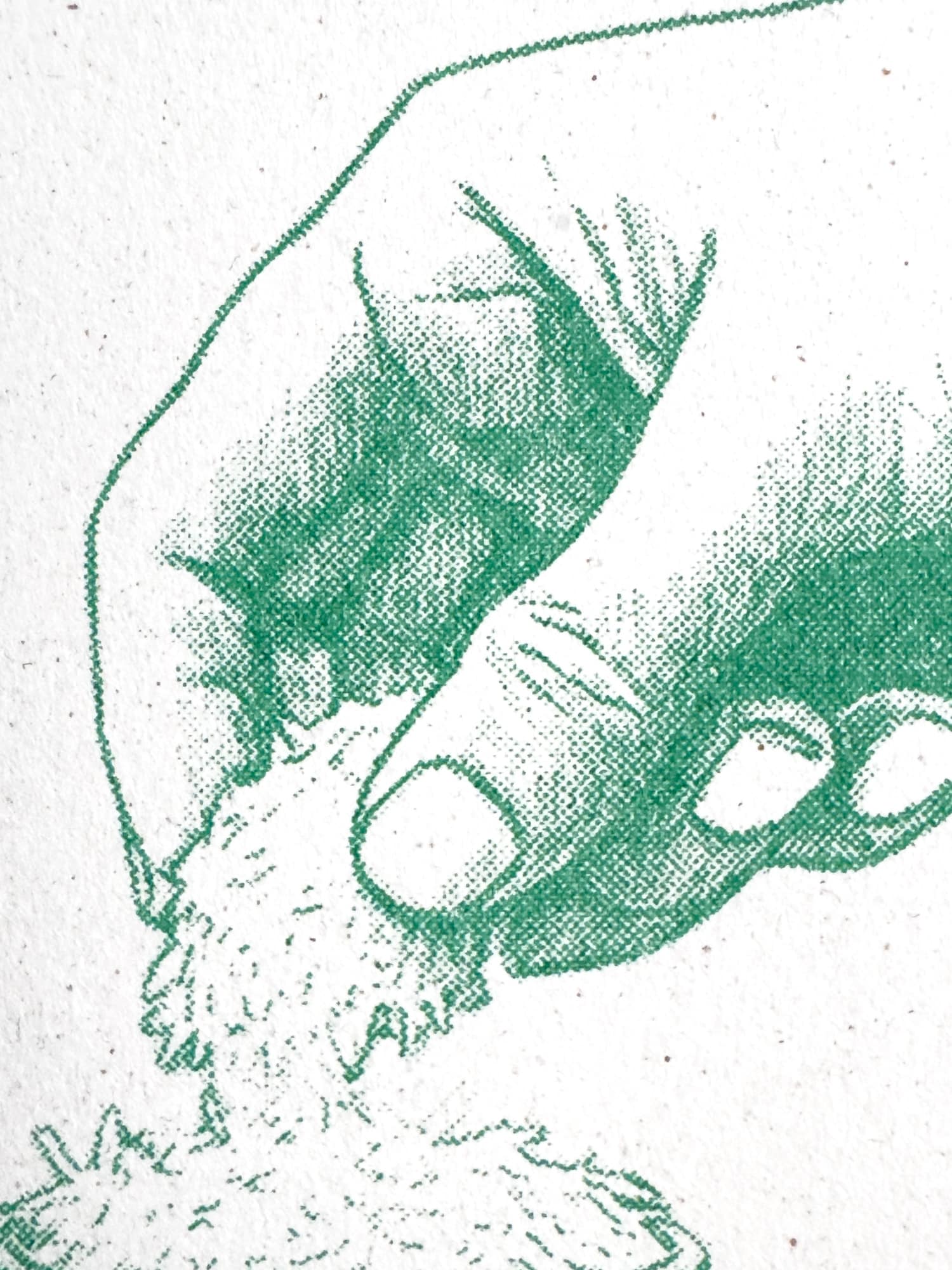 Risografia criada para a ação-exibição-residência coletiva de arte impressa La lengua es una escala hasta la língua: impressiones entre Brasil y Ecuador