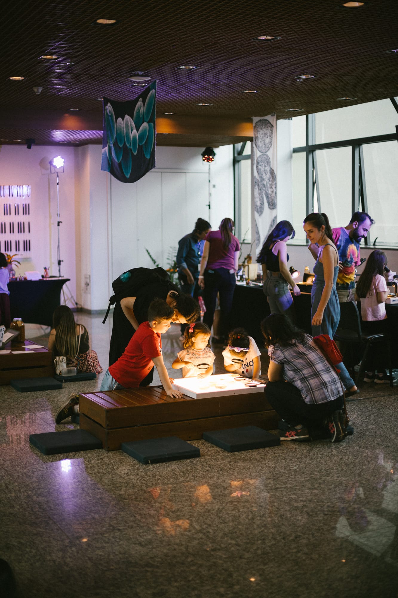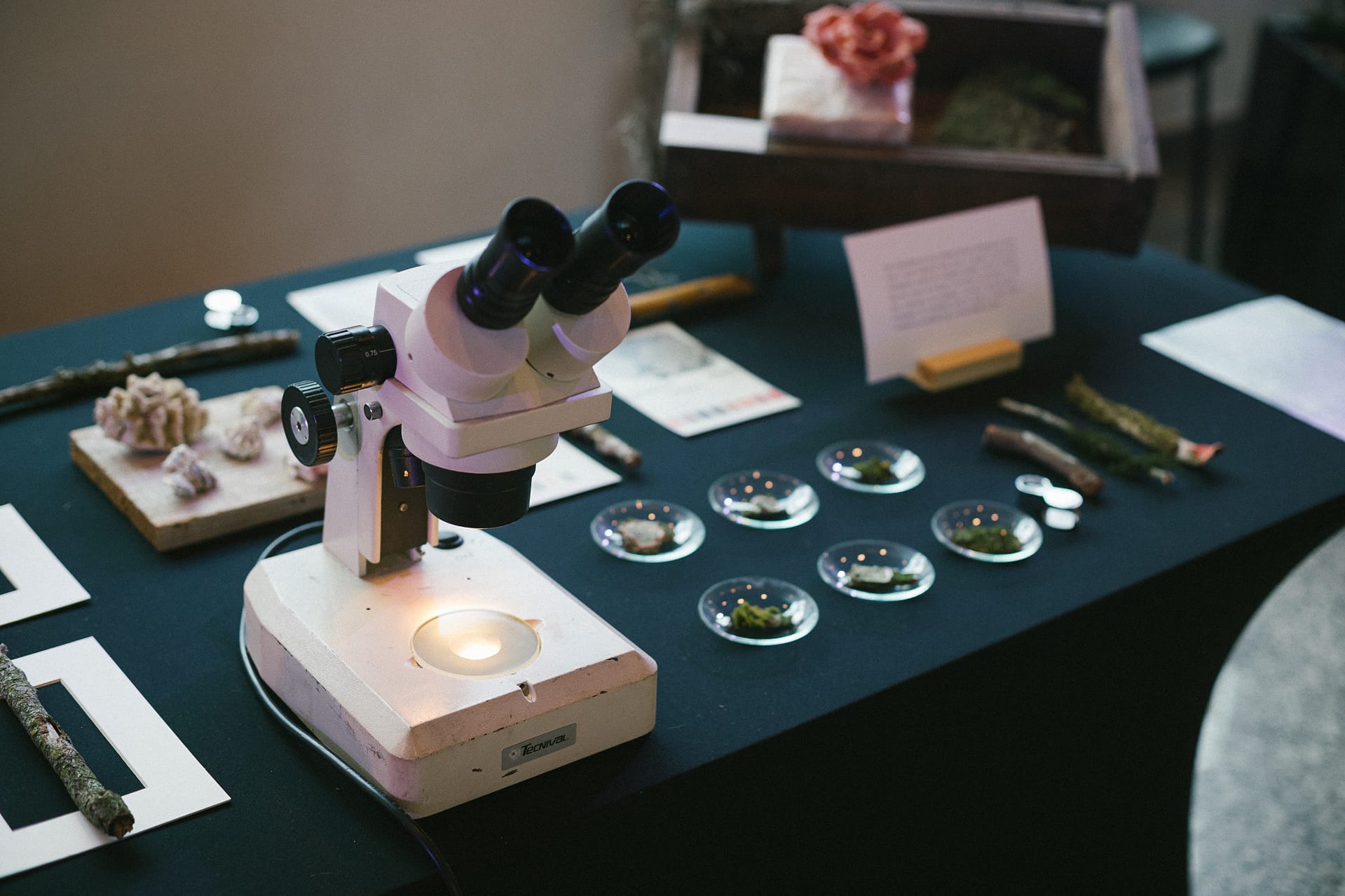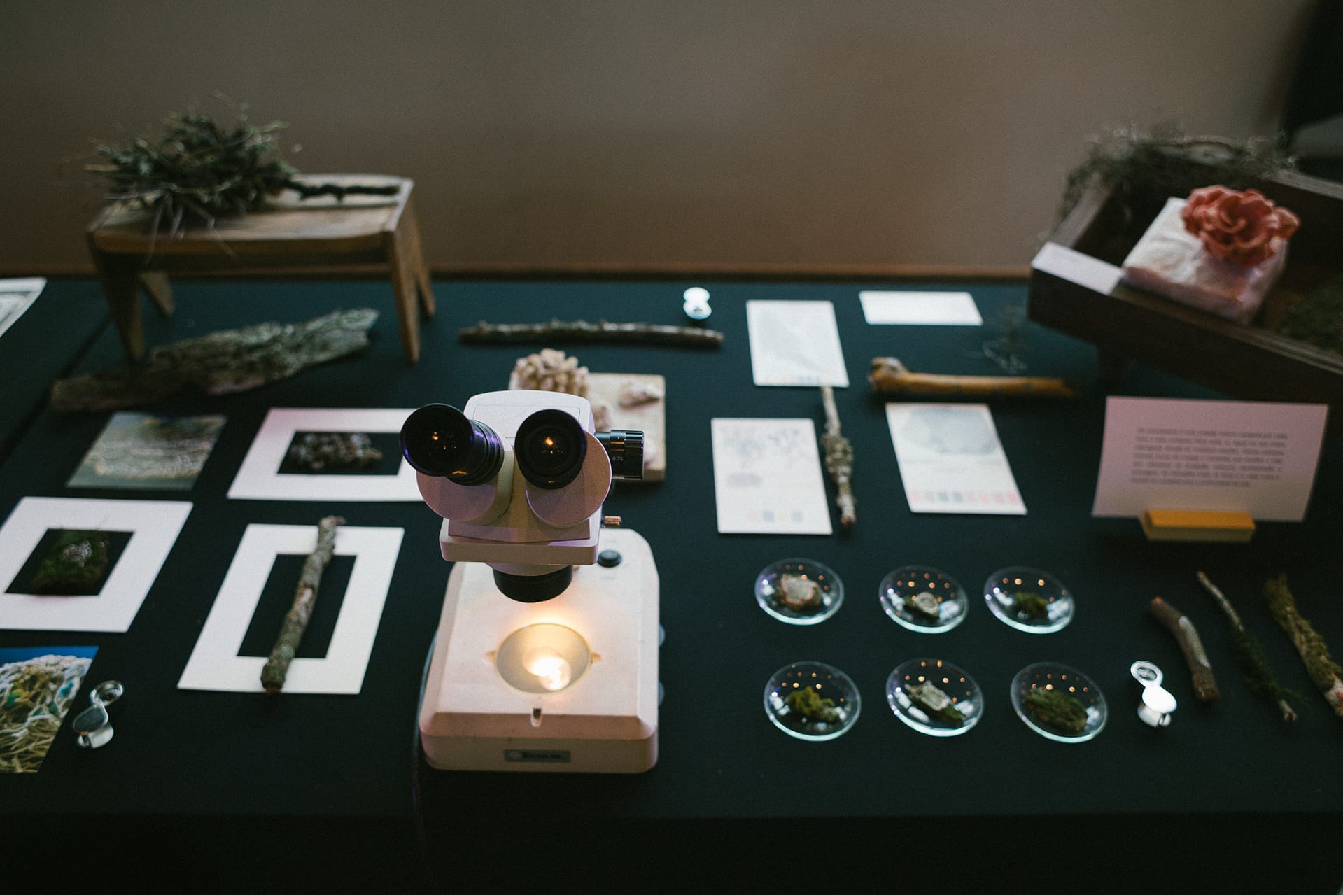 Ecossistemas microscópicos é uma investigação das relações entre seres vivos em pequenas escalas. Apontamos nossos dispositivos ópticos e nossa imaginação para os ambientes onde vivem os seres invisíveis que nos cercam, em busca de encontros com os fenômenos que sustentam o mundo. Os princípios que emergem da natureza se manifestam em todas as dimensões – observá-los na casca de uma árvore, em um pote de picles, na superfície da pele ou no chão da floresta nos ajuda a percebê-los e a percebermos a vida como uma força coesa que se produz no encontro.