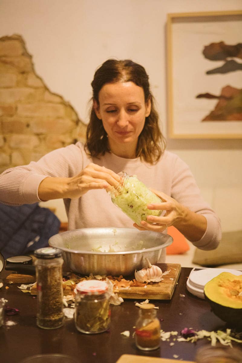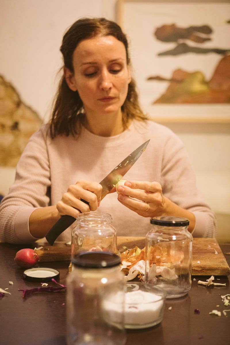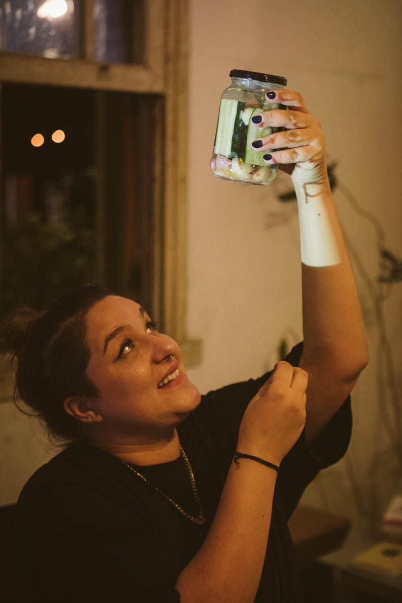 Oficina de fermentação de plantas com introdução aos processos de transformação de alimentos por comunidades selvagens lactofermentantes. Criação de chucrute e picles a partir de composições estéticas com vegetais.