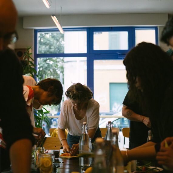 Por meio de colaborações multiespécie, podemos expandir nossos corpos e nossos gestos de comer e digerir em direção ao todo que nos cerca, nutrindo territórios férteis de resistência e colaboração. Neste encontro, propomos a fermentação como um gesto político, poético e estético. Aprendemos através do contágio, discutimos sobre cozinha coletiva, decolonialidade, ecologia e invenção, e inoculamos fermentações lácticas como uma forma de cartografar encontros com plantas, fungos e bactérias que comem e são comidos em Roma.