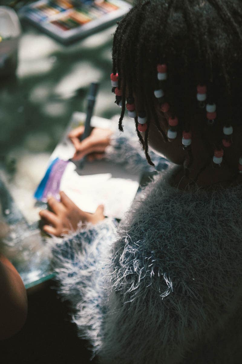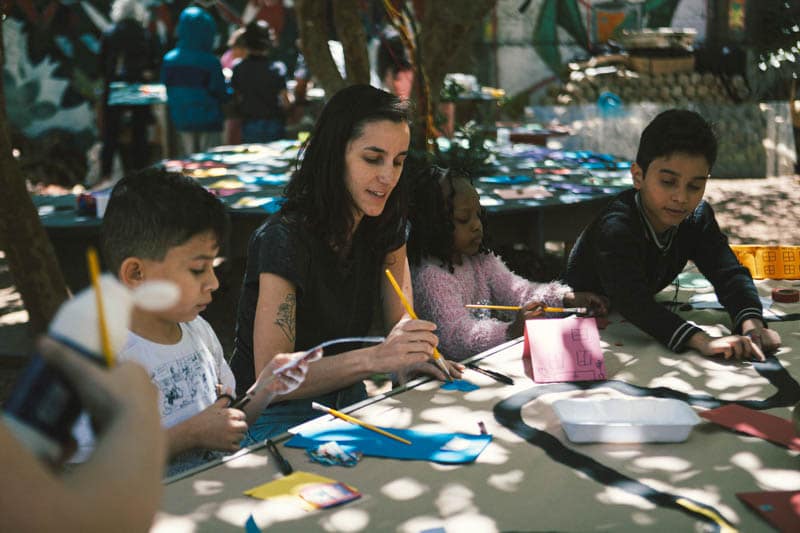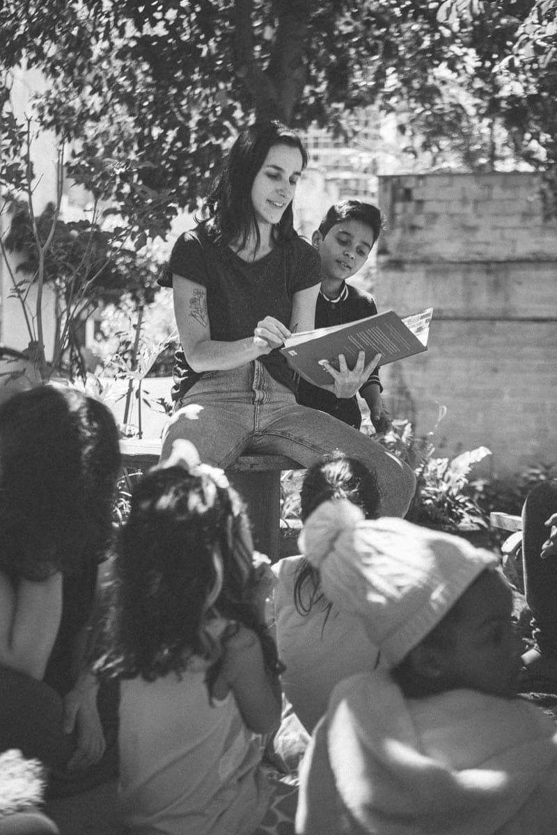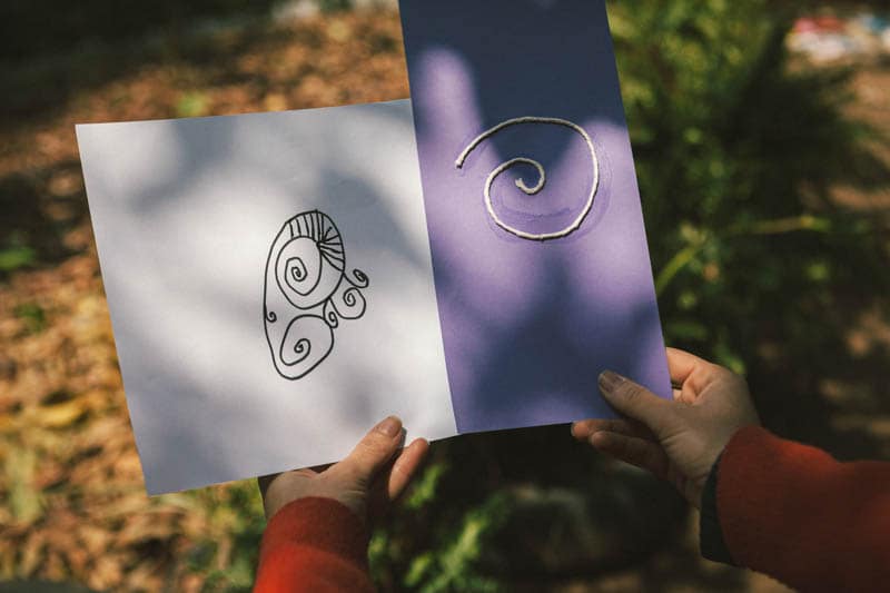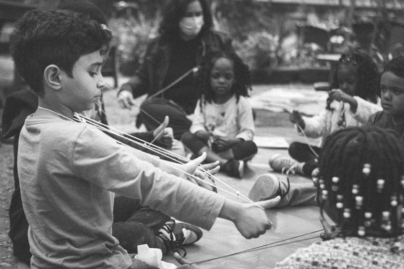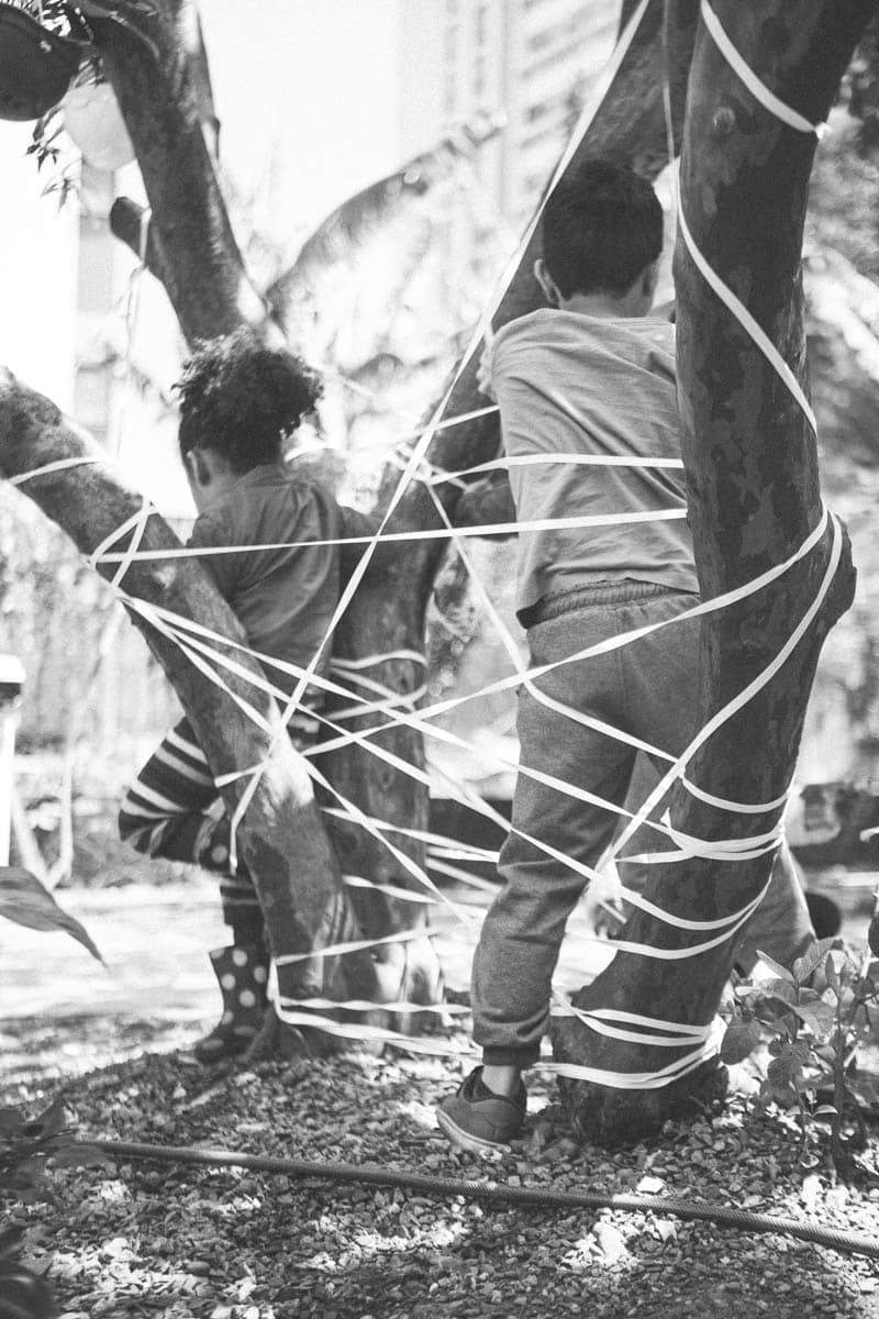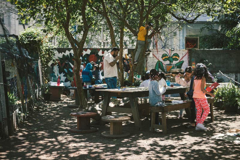 Oficinas de arte e natureza para as crianças da Ocupação 9 de julho em São Paulo: as linhas na natureza, as linhas na brincadeira e as linhas na cidade.